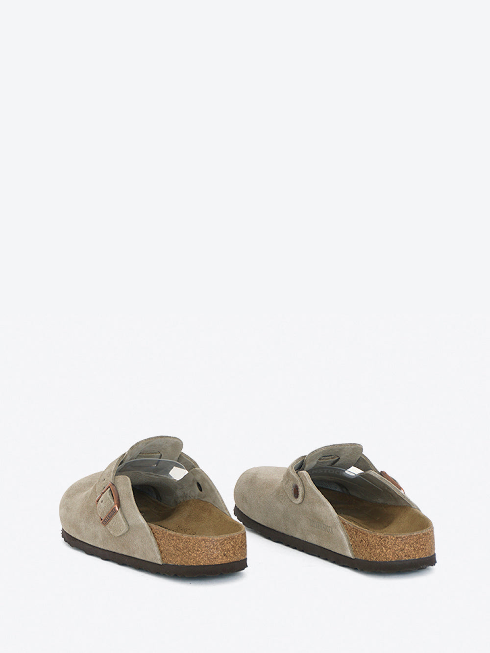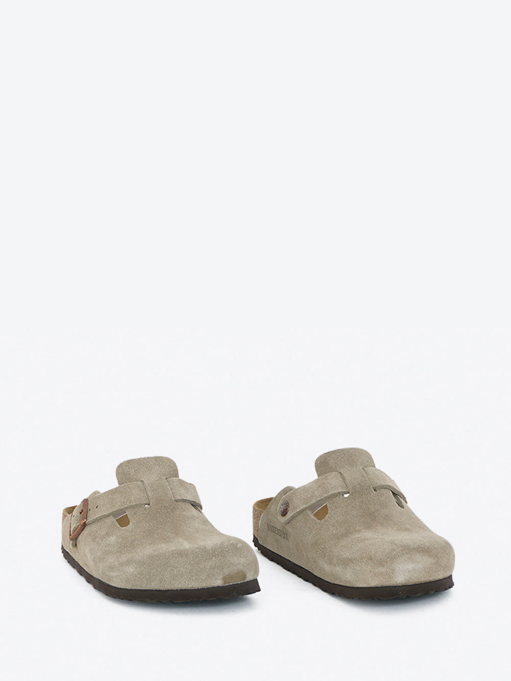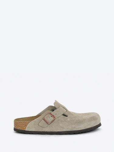 Il sabot Boston, un classico della gamma BIRKENSTOCK, si presenta qui in un look alla moda e, al tempo stesso, molto naturale. A questo contribuisce la tomaia in pregiata pelle scamosciata particolarmente morbida.
