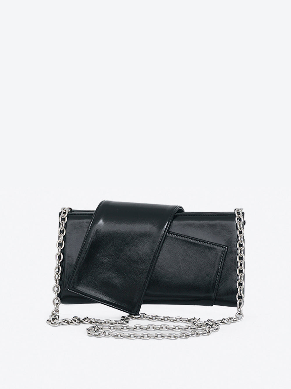 Borsa Strange in pelle platino con tasca interna, foderata in cotone logato, tracolla in pelle removibile e tracolla in dotazzione removibile in metallo, chiusura patta con bottone magnetico.