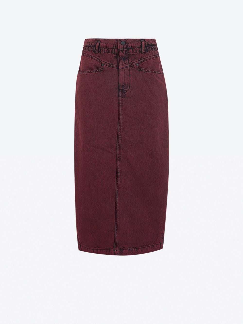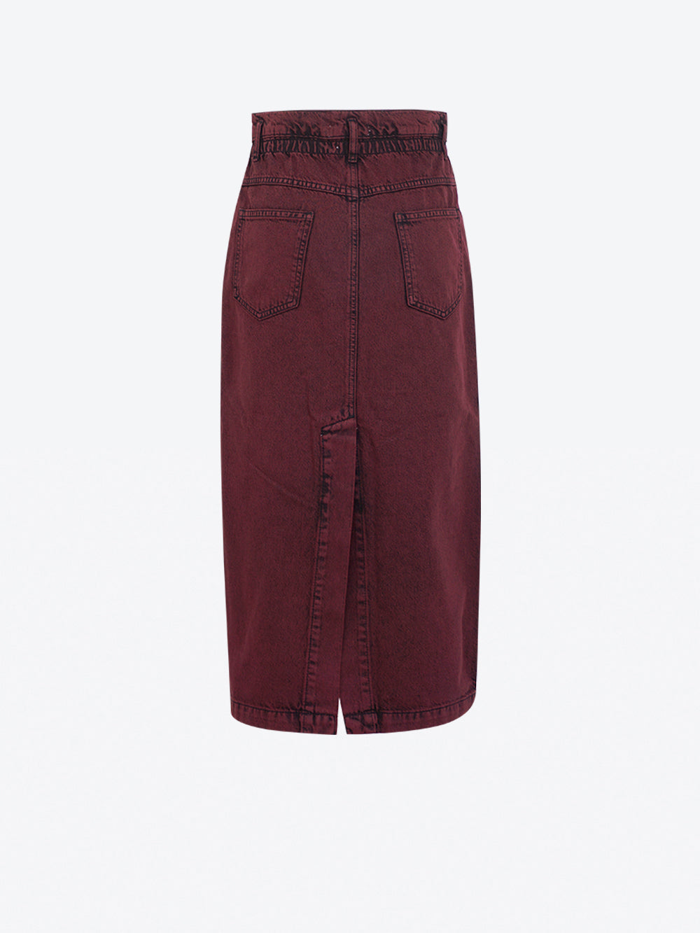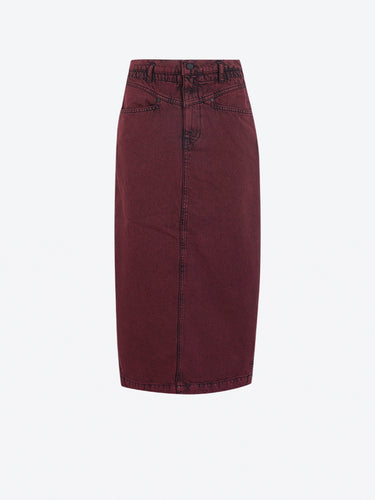 Gonna in denim di cotone tinto in capo, questa gonna di lunghezza media presenta un'intramontabile silhouette a matita.