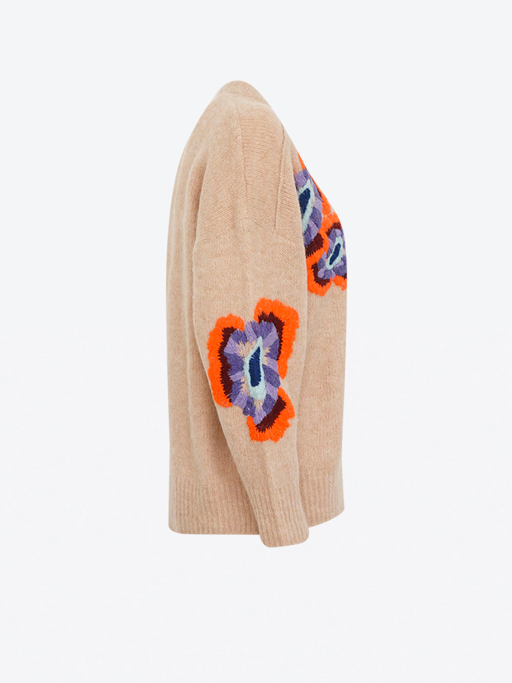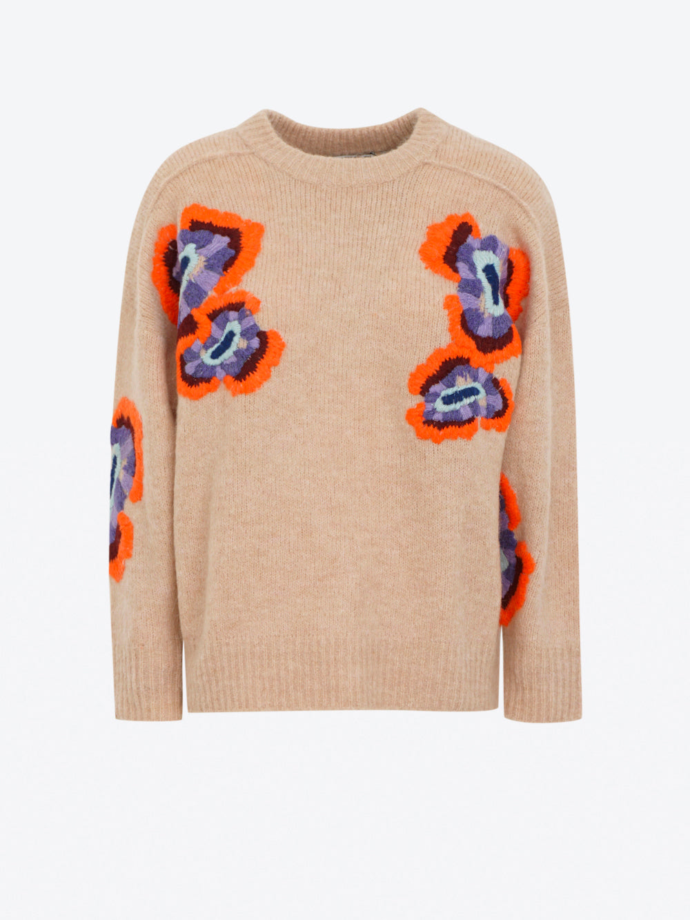Realizzato con un filato misto mohair spazzolato, il maglione jacquard offre una consistenza incredibilmente morbida.