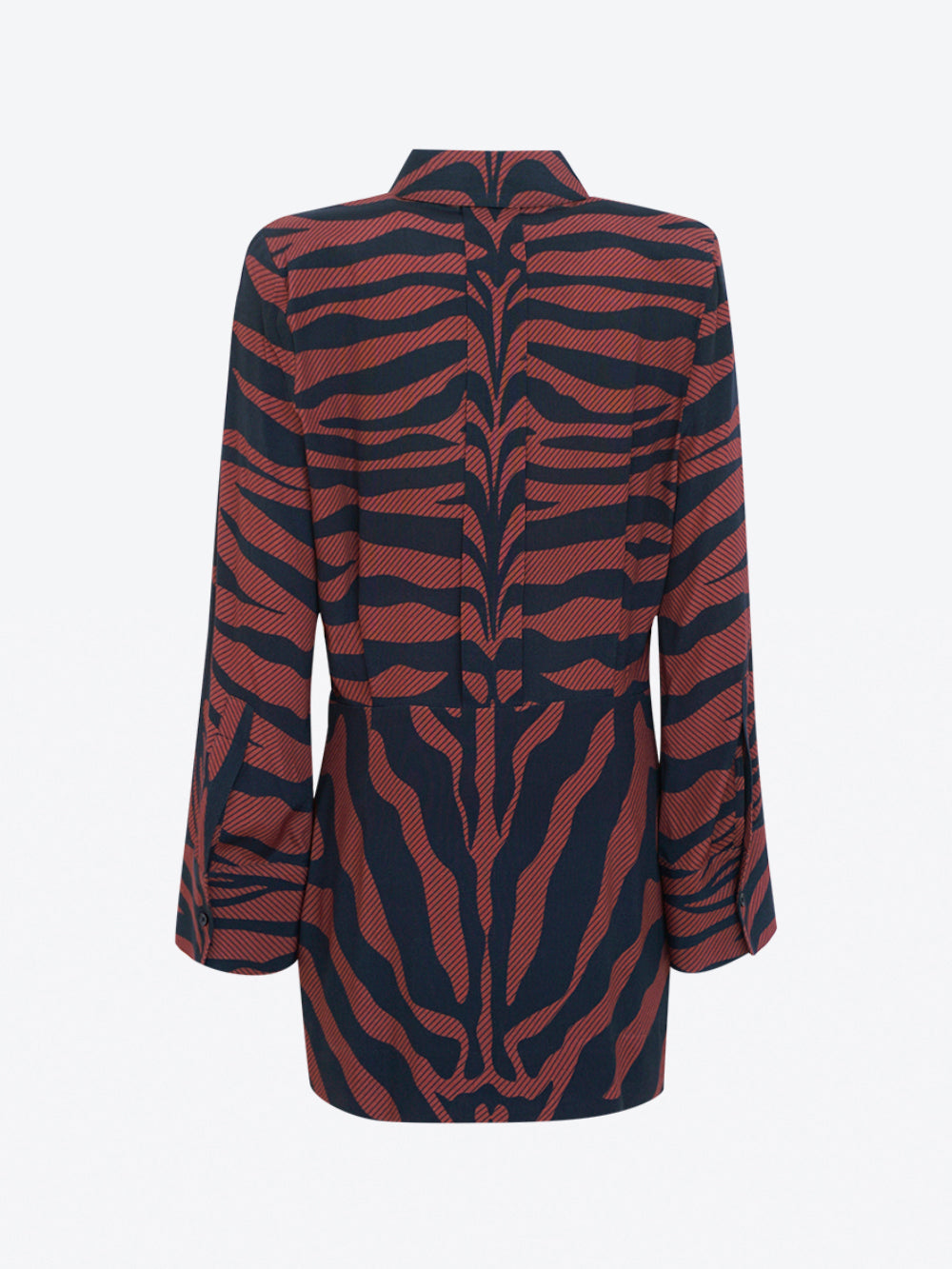 Mini abito è caratterizzato da vistose spalline e da una piega invertita in vita, motivo jacquard d'ispirazione zebrata.