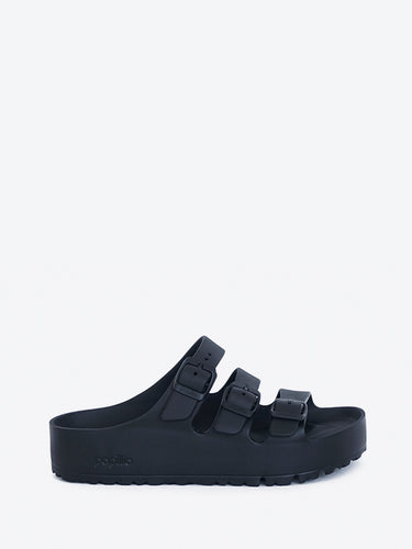 Birkenstock Florida è il sandalo adatto a chi è sempre in piedi. Questo modello con tre cinturini tiene ben saldo il piede e offre una comodità ottimale. La nuova suola esterna Platform Flex si allarga sul tallone per offrire una stabilità e una distribuzione del peso maggiori. Il nuovo design con solchi orizzontali nella parte posteriore migliora la flessibilità e il rollio del piede. Questa pregiata plastica è inodore ed è testata contro le sostanze inquinanti, è inoltre ammortizzante, impermeabile e delicata sulla pelle. Il sandalo è perfetto per spiaggia, giardino, centri benessere e spa.